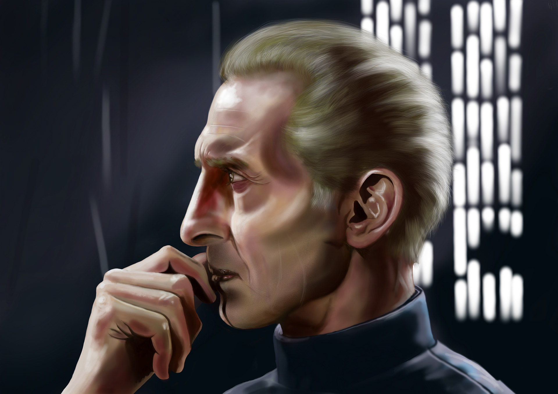 Portrait of Peter Cushing as Grand Moff Tarkin from Star Wars, A New Hope.