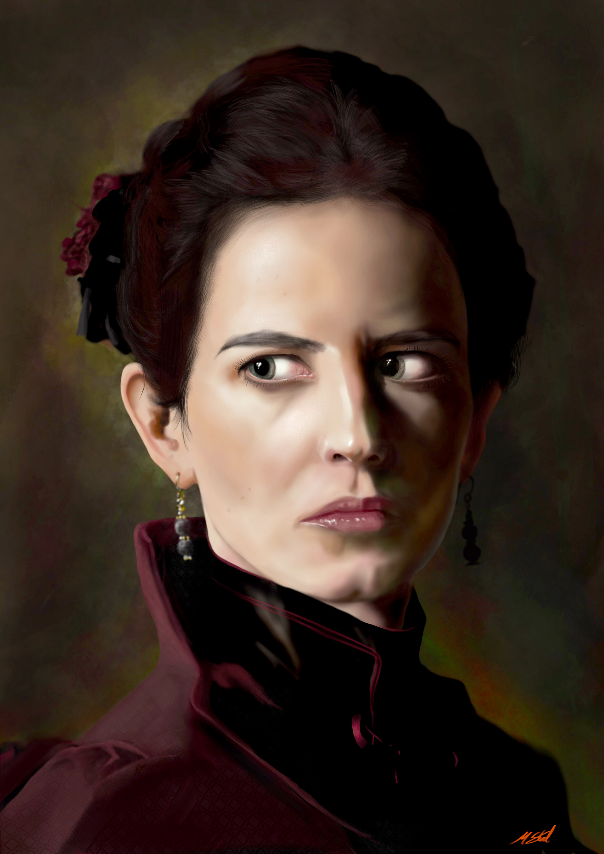 Digital painting of Eva Green as Vanessa Ives created on the iPad Pro.